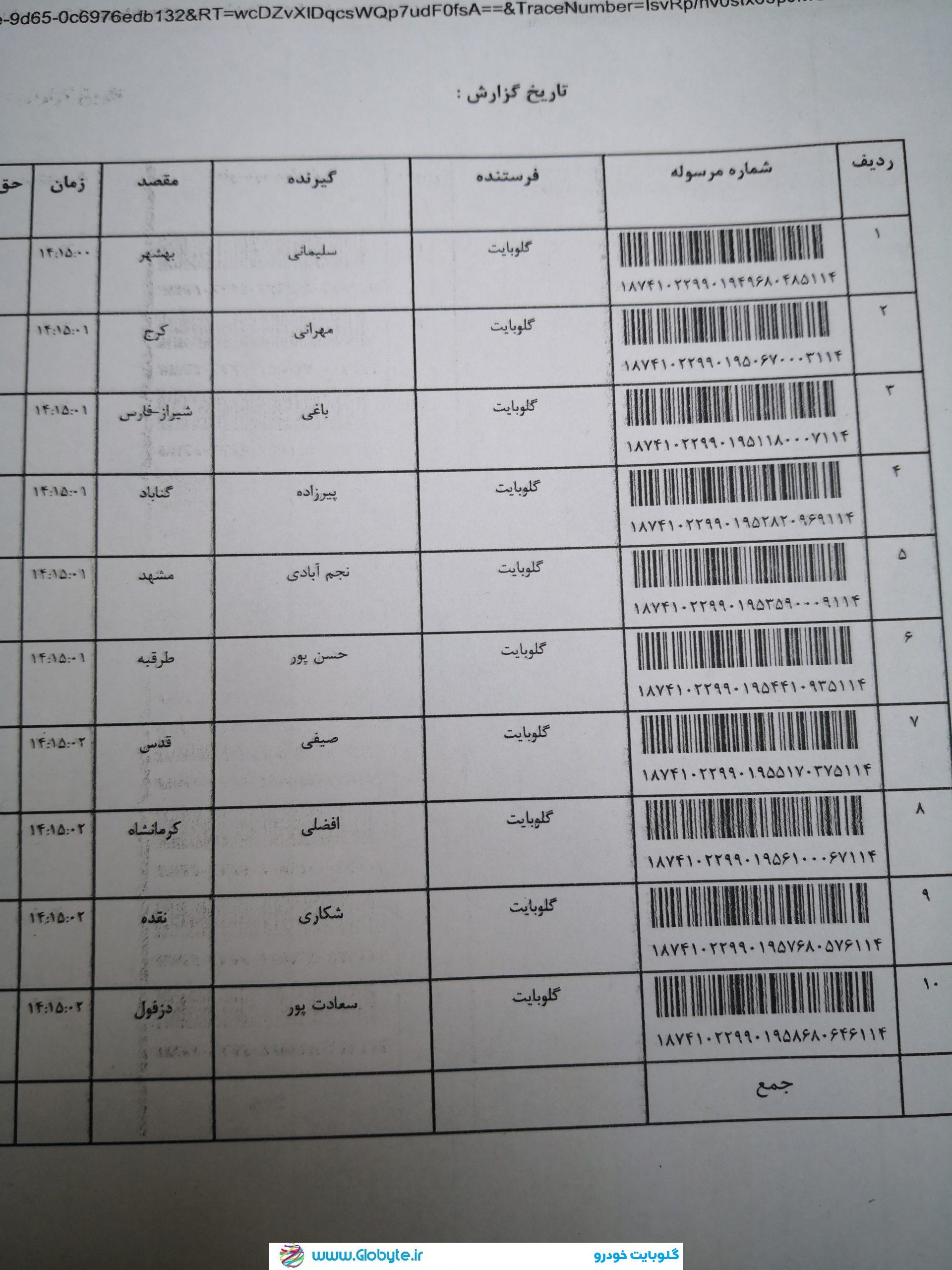 ارسالی‌های امروز ۲۳ دی ماه ۱۴۰۲ توسط گلوبایت-وب سایت اینترنتی گلوبایت-WWW.Globyte.ir