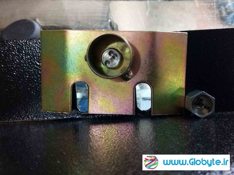 سپس قطعه فلزی را هم روی دو پیچ قرار میدهید و طبق تصویر زیر قطعه فلزی را با پیچ ضدسرقت محکم میکنید