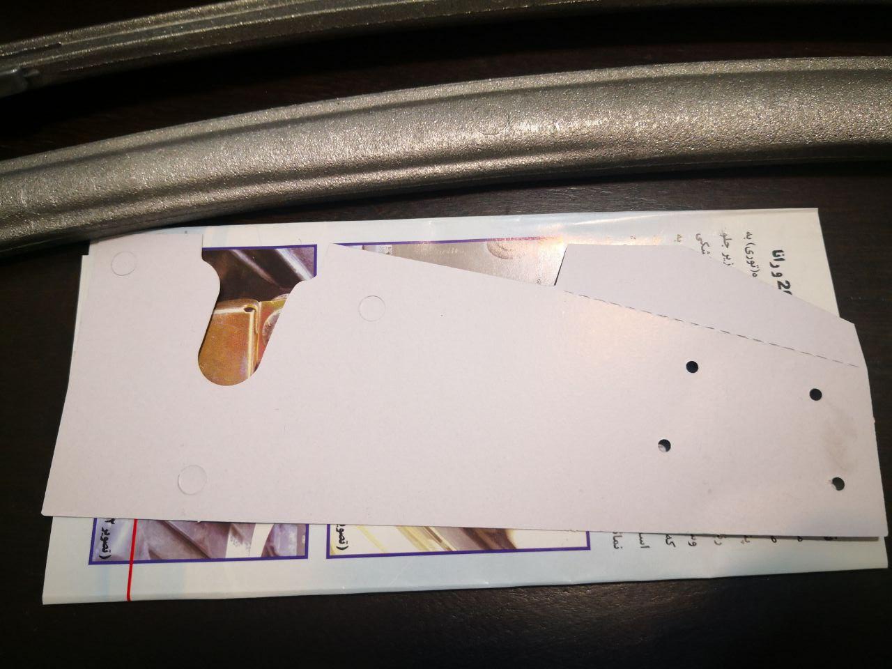 6. در بسته بندی پک ضدسرقت درب پژو ۲۰۷ هاچبک اتوماتیک الگوی سوراخکاری موجود است آن را از محل پرفراژ (نقطه چین) به اندازه 90 درجه خم کنید .